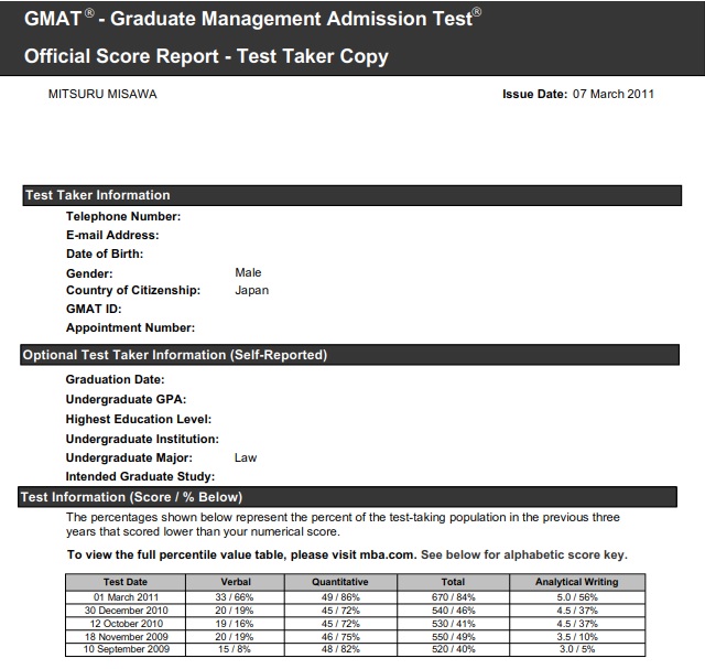 GMATは670点とAWA5.0で終了しました。