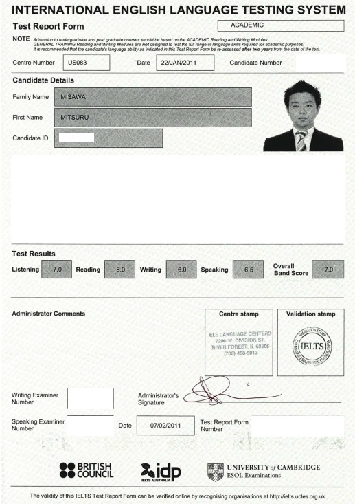 まずはIELTS7.0を取れた時のスコア表