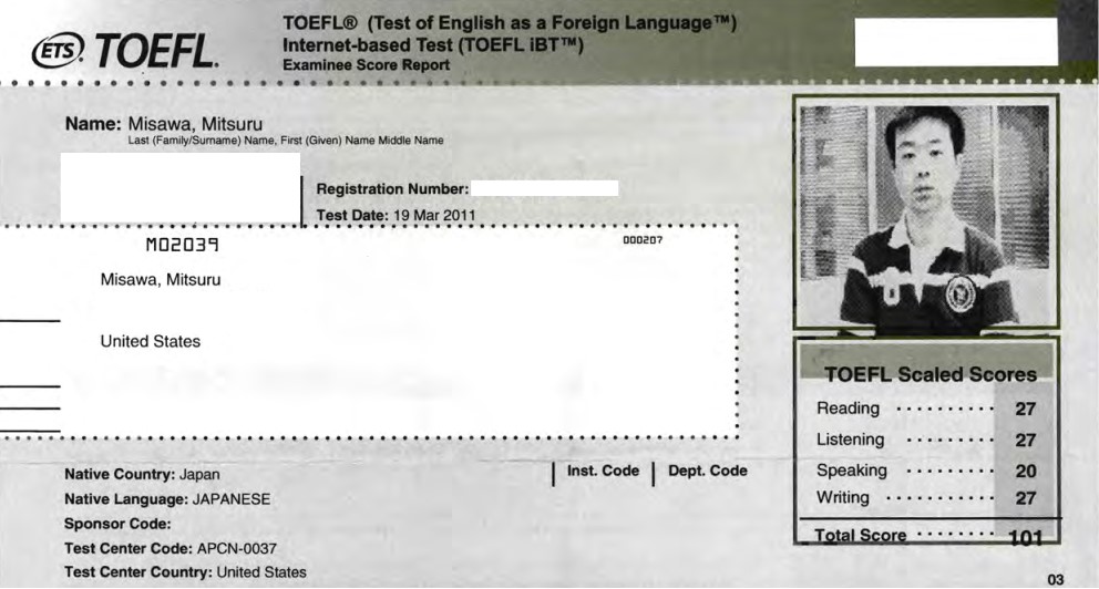 次にTOEFL101点。スピーキング20点…。