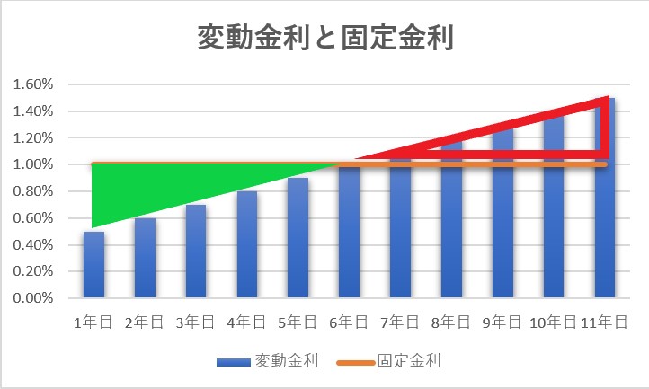 変動金利と固定金利のPros/Consは表裏一体といった感じですね。