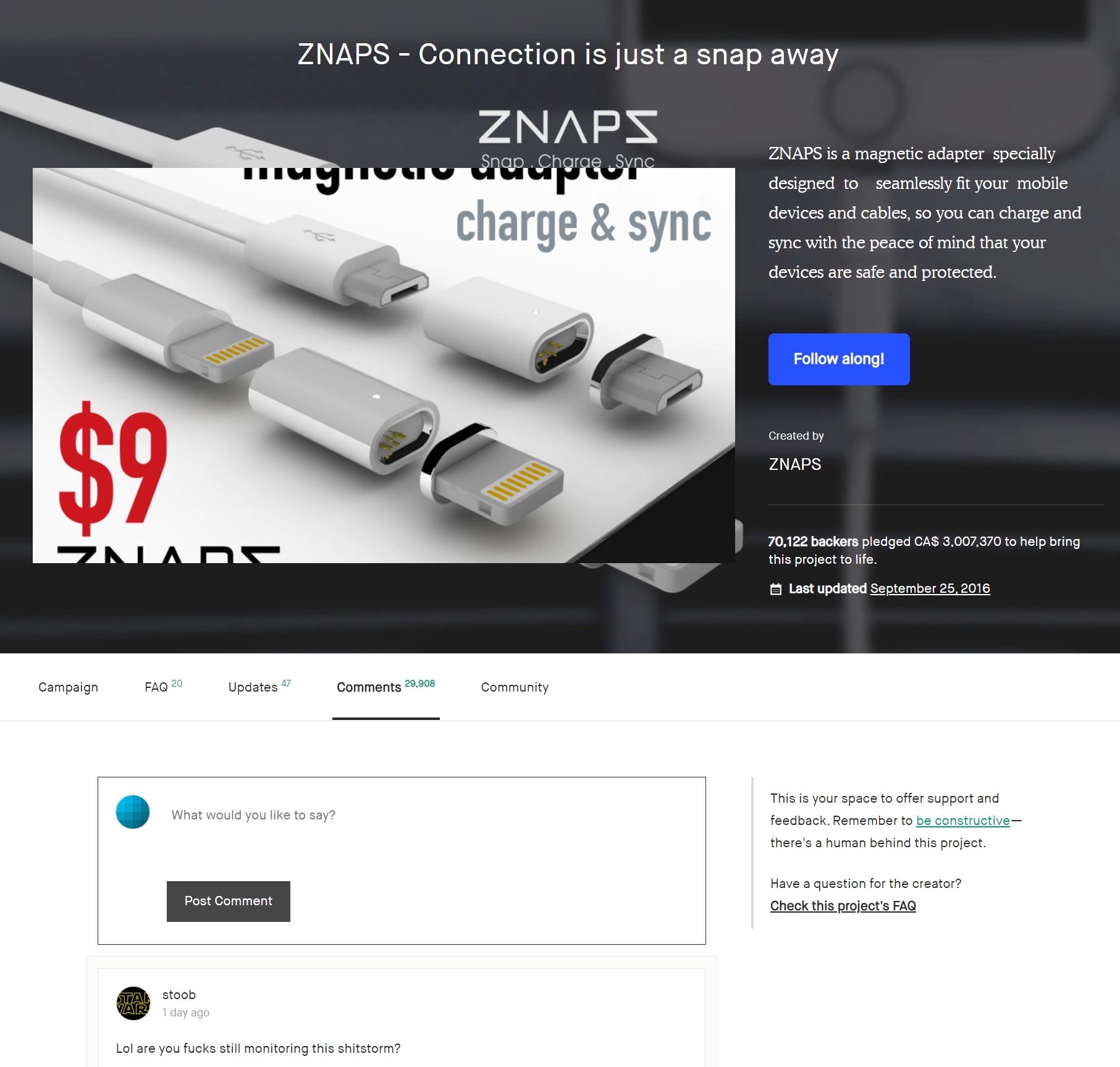 最初に経験したKickstarterの↓のプロジェクトの経験は衝撃的すぎました。