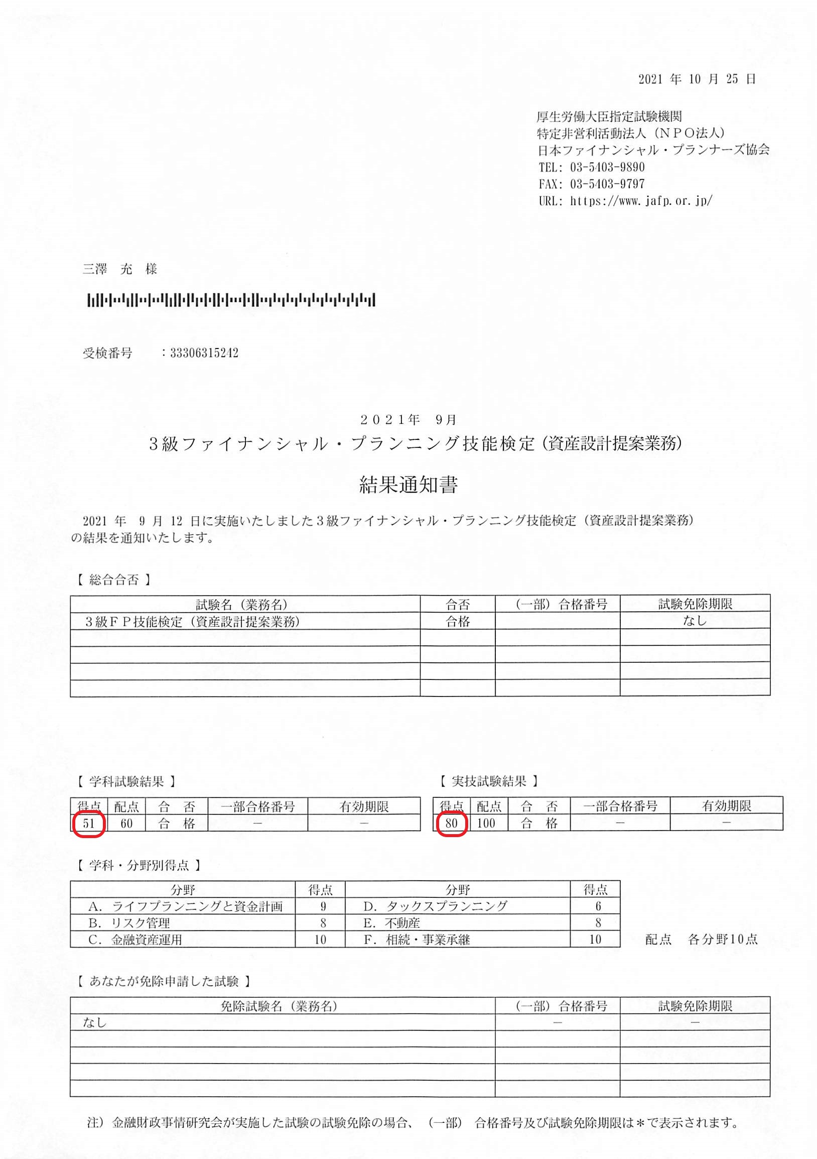 金融の基礎知識を広く浅く確認したい、ということを目的に、2021年9月12日(日)にFP3級を受験してきました。